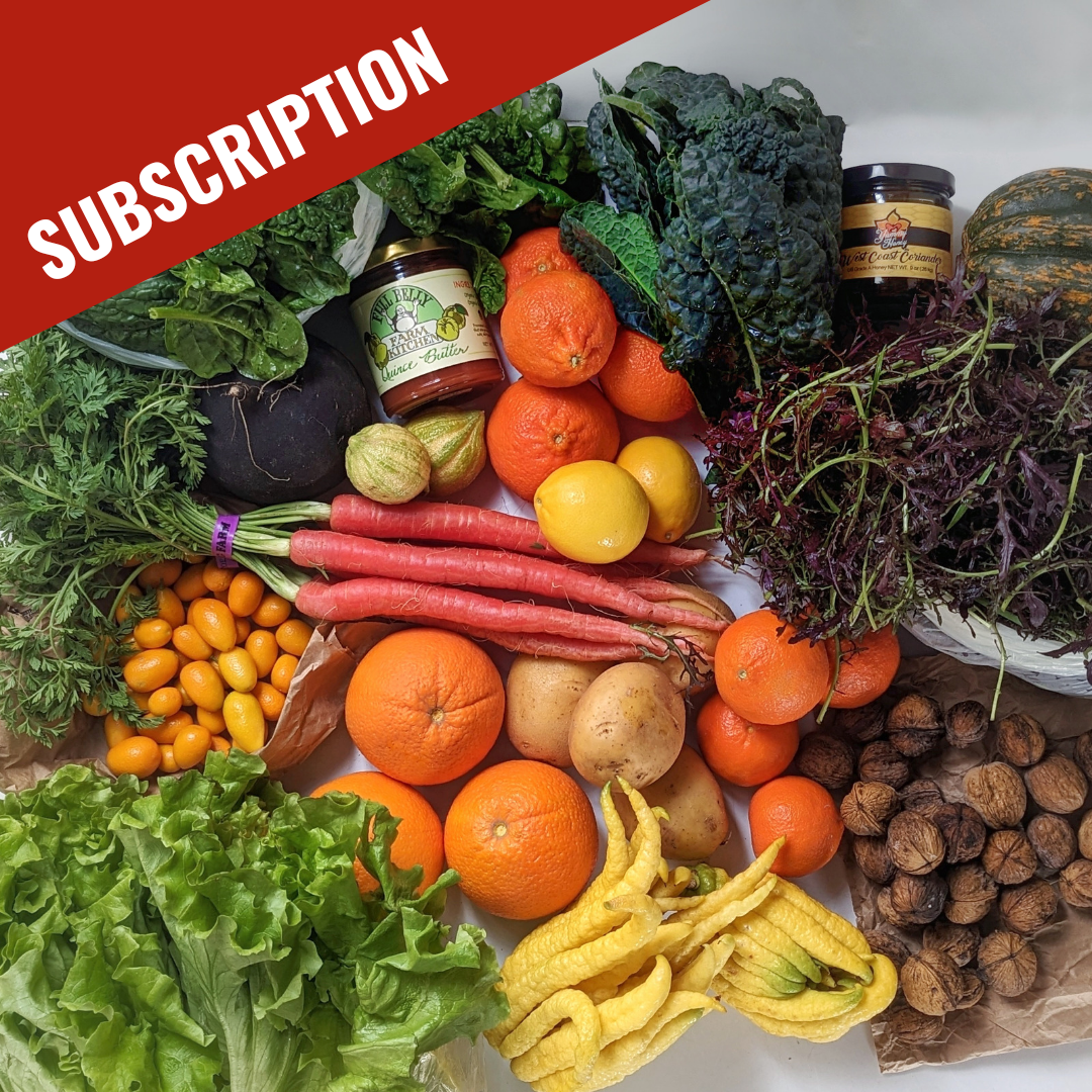 Delivery Schedule: as of February 2023, we’re delivering Bounty Boxes every other week. Our next delivery will happen on (approx) Wednesday, Dec 18th. If you select weekly deliveries, we will deliver biweekly but notify you as soon as we get back to the regular schedule. Please email or text us if we can provide any further info. We appreciate your understanding and patience.